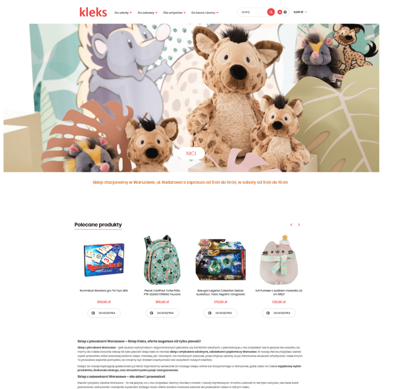 Kleks: sklep oferujący wiele wyrobów dla dzieci
